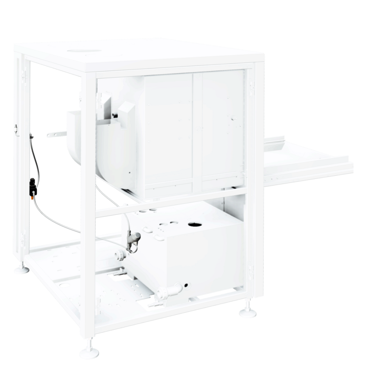 VA stainless steel drawer unit with ASYNCHRO TopDown-double rotor with PUSHFORCE nozzles to increase the loading/cleaning capacity of horizontally cleaning systems.