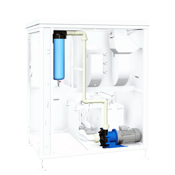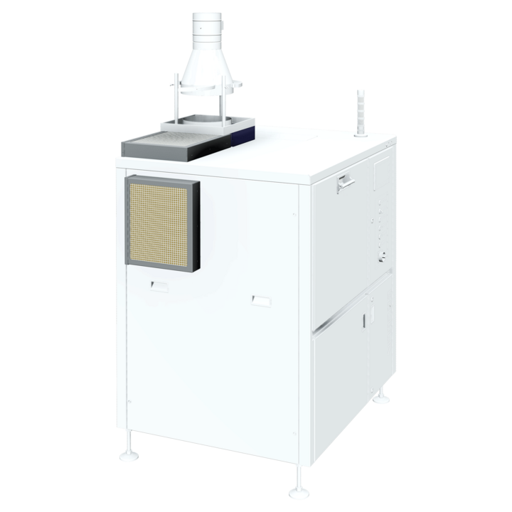 Filters finest particles from the room air that is sucked by the system for the drying process