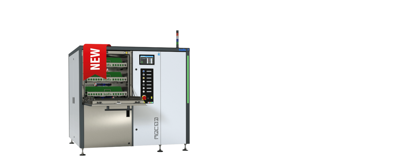 The configuration with large process chamber, three parallel working tanks and three separate circuits, up to 80 °C cleaning temperature and up to 120 °C drying temperature as well as ClosedLoop water treatment ensures short cycle times and low operating costs, which make the AQUBE® XH7 the economically perfect choice for the qualified cleaning of PCBAs and DCBs.