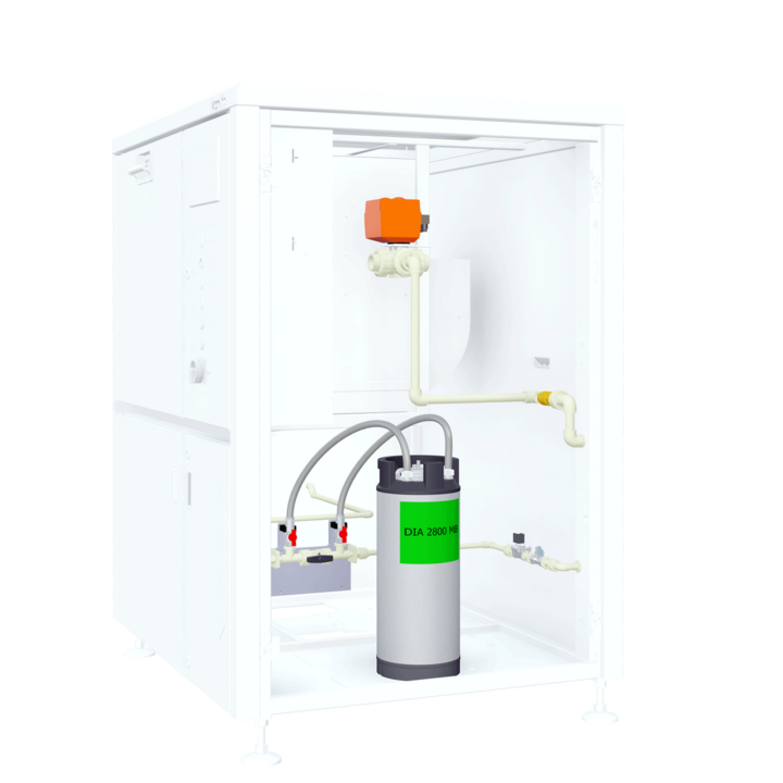 For the production and quality control of deionized (DI) and demineralized (DM) purified rinse water in the cleaning system. (including Option Automatic Water Exchange)